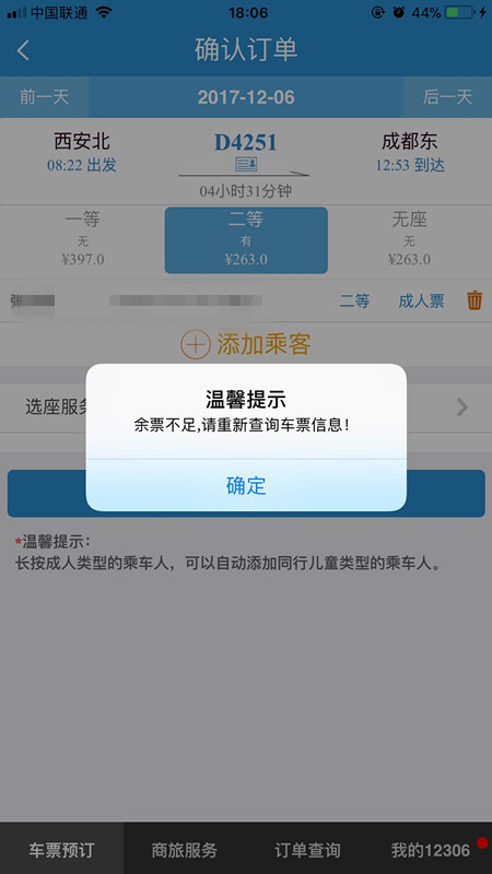 西部網(wǎng)、陜西頭條記者通過12306手機(jī)購票平臺(tái)查詢余票顯示,30分鐘后,當(dāng)日另一趟西安北至成都東的D4253次列車車票也已售罄。