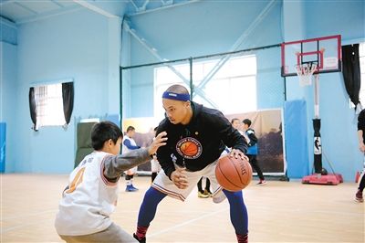 特里·托馬斯教孩子們打籃球 記者 翟小雪 攝