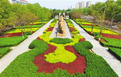 南二環(huán)道路中央?yún)^(qū)域鮮花盛開,綠草茵茵。 記者 謝偉 攝