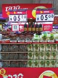 昨日下午,根據(jù)曹先生提供的信息,華商報記者前往東儀路與丈八東路十字東南角的人人樂南郊購物廣場。從二樓入口進入后,就能看到空中掛著“均價特賣”的宣傳海報。在曹先生購買醋的攤位,空中懸掛著“均價特賣5元”海報,下面堆放著多桶醋和粉絲等商品。記者查看貨堆四周,只看到粉絲有專門價簽為5元每袋。