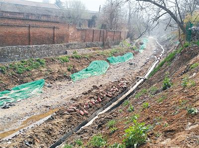 記者一行從位于臨潼建業(yè)家園小區(qū)南面的大秦建材批發(fā)市場(chǎng)直往北走,發(fā)現(xiàn)去年墻外的一片垃圾和臭水已經(jīng)不見(jiàn)了蹤影。之前排水管排出的臭水裸露在地面,臭水溝兩旁堆滿了生活垃圾,如今排水管口和長(zhǎng)長(zhǎng)的水泥管道連接在一起,排出的污水順著水泥管道直接從地下流走,已經(jīng)看不到污水的影子,也聞不見(jiàn)臭味,只聽(tīng)到水泥管道里傳出嘩啦啦的水聲。兩邊的垃圾明顯被鏟車清運(yùn)了,現(xiàn)場(chǎng)還留下鏟車鏟過(guò)的痕跡。水泥管道的一大半已經(jīng)被埋在地下。