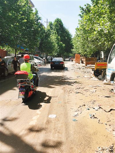 除了擁堵外,臟亂問(wèn)題更是讓大家煩心。記者看到,在體育館東路北段的西側(cè),建筑垃圾、磚塊堆、塑料袋和廢棄材料等隨處可見(jiàn)、任意堆積,人行道已不復(fù)存在。一工地內(nèi)渣土與水混合在一起,使這條路泥濘不堪,空氣中也彌漫著嗆人的塵土味道,有的居民出行戴了口罩。“這個(gè)工地在這里一個(gè)多月了,垃圾、泥土、揚(yáng)塵到處都是,灑過(guò)水后路上又變得泥濘,統(tǒng)共一百來(lái)米的路,大路走不成,人行道被霸占。”家住碑林區(qū)工商局家屬樓的魏師傅推著嬰兒車(chē),正在小心翼翼地邊走邊看,以躲避過(guò)往車(chē)輛。