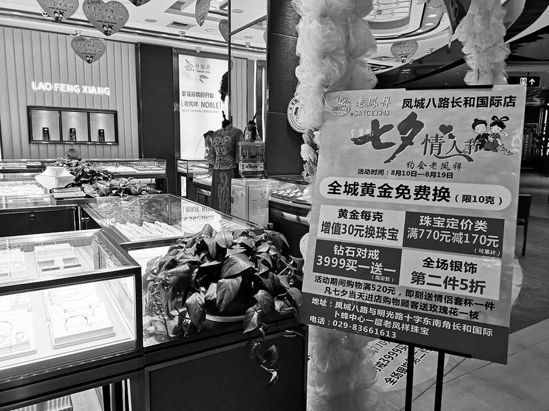8月11日中午正逢周末,記者來(lái)到人氣極高的小寨賽格,在珠寶黃金專(zhuān)柜,發(fā)現(xiàn)很多珠寶品牌都趁機(jī)推出七夕活動(dòng),不少消費(fèi)者正在詢(xún)價(jià)。今年27歲的趙女士說(shuō),她和男友剛剛訂婚,準(zhǔn)備看看首飾,為婚禮準(zhǔn)備,這段時(shí)間恰好遇到七夕節(jié)活動(dòng),如果優(yōu)惠合適的話(huà),她們就打算購(gòu)買(mǎi)了。