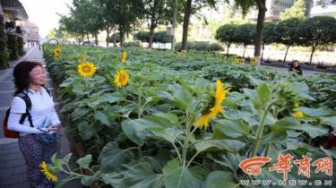 原標題:西安南大街驚現(xiàn)一片向日葵花海 昨日,在西安南大街上擺放的向日葵,引來蜜蜂采蜜、市民拍照。這片向日葵花海有百米長、寬三四米,中間留出一條……