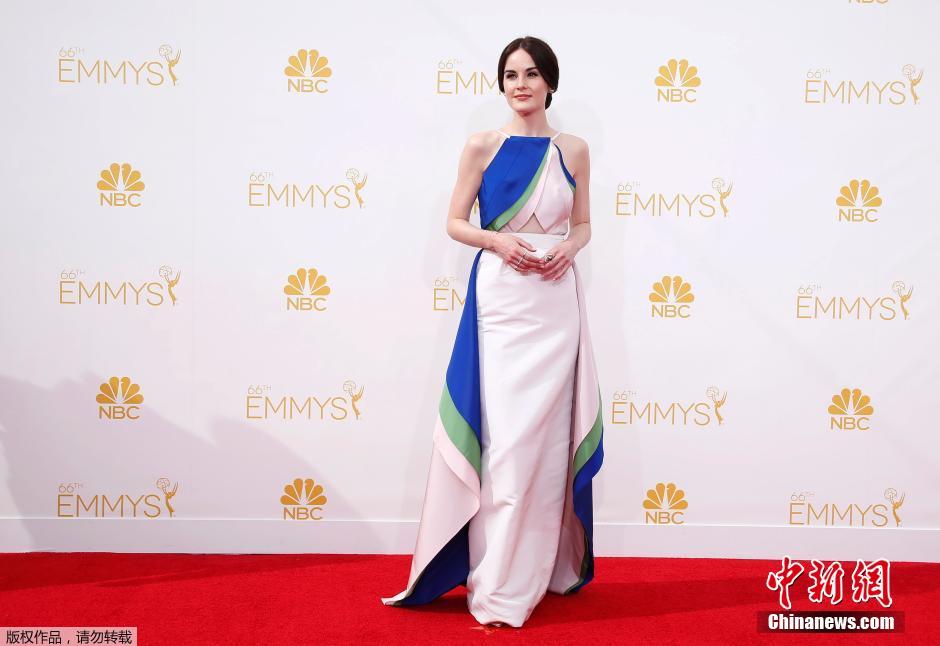 當地時間2014年8月25日,美國洛杉磯,第66屆美國電視艾美獎頒獎典禮舉行,眾星走上紅毯。圖為《唐頓莊園》“大小姐”米歇爾優(yōu)雅亮相。
