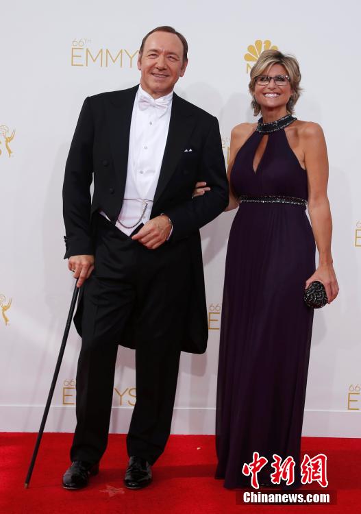 當(dāng)?shù)貢r(shí)間2014年8月25日,美國(guó)洛杉磯,第66屆美國(guó)電視艾美獎(jiǎng)?lì)C獎(jiǎng)典禮舉行,眾星走上紅毯。圖為《紙牌屋》凱文史派西拄拐現(xiàn)身。v6G安康新聞網(wǎng)