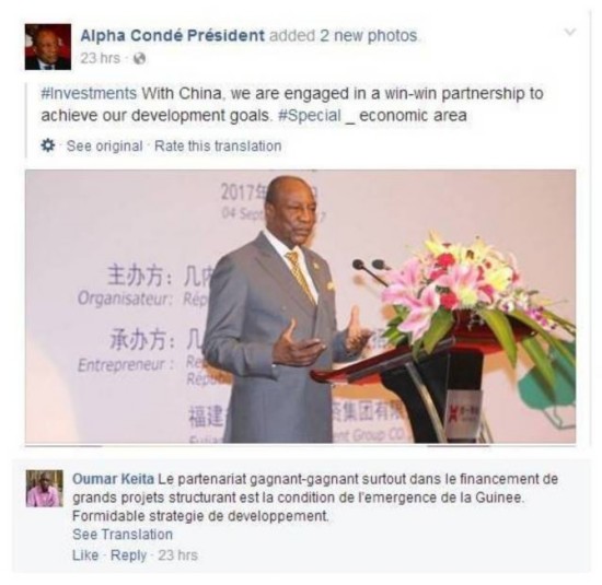 年近八旬的幾內(nèi)亞總統(tǒng)孔戴也在臉譜上記錄下自己的中國之行。他在一條貼文中寫道:“我們與中國開展雙贏合作,以實(shí)現(xiàn)我們的發(fā)展目標(biāo)”。