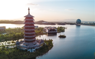| 北京懷柔雁棲湖雁棲塔。“一帶一路”國際合作高峰論壇于2017年5月14日至15日在北京舉行,懷柔雁棲湖國際會議中心是此次高峰論壇的主會場。 |