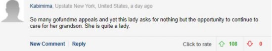 美國紐約的網(wǎng)友Kabimima:“眾籌平臺GoFundMe上有各種訴求,而這位女士卻沒有要求任何東西,只是想要能夠繼續(xù)送她的孫子上學。她真是了不起!