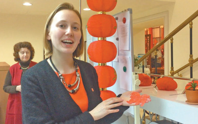 為了更好地傳遞這種信息,文化中心精心策劃了具有本地特色的春節(jié)特別活動。位于莫斯科紅場旁的大型百貨商場“古姆”,是俄羅斯最負盛名的高檔商場,從2月8日起,商場進入了“春節(jié)月”,邀請著名室內裝飾大師,巧妙地將中國福娃與俄羅斯套娃、中國喜蛋與俄羅斯彩蛋等中俄節(jié)日文化元素結合在一起。長廊上,極具中國特色的“紅包”樹掛,讓人流連忘返的精品刺繡展品,充滿中國年味兒的民間藝術糖畫、剪紙,色香味俱全的中國美食,以及商場里循環(huán)播放的“恭喜發(fā)財”中國新年歌,讓中國春節(jié)走進了當地百姓的生活圈。品嘗中華美食是春節(jié)期間最受外國人歡迎的一個文化活動,但這次玩出了“新花樣”——與俄羅斯總廚協(xié)會合作,舉辦中俄美食之夜,由中俄兩方的廚師團隊采用相同食材做出不同菜品,由媒體記者、美食家和用餐客人共同品鑒。