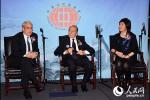 莫里斯·格林伯格先生(中)與中國(guó)駐紐約總領(lǐng)事章啟月大使(右)和耶魯大學(xué)校長(zhǎng)彼得·沙洛維(左)就中美關(guān)系進(jìn)行對(duì)話。(圖片由主辦方提供)    ……