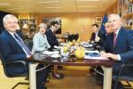 圖為12月8日,英國首相特蕾莎·梅(左二)與歐盟委員會(huì)主席容克(右二)在比利時(shí)布魯塞爾的歐盟總部會(huì)面。