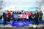 11月6日,乘坐美國(guó)航空首航北京-洛杉磯航班的乘客與美國(guó)航空的工作人員合影留念。攝影:吳美妮 人民網(wǎng)北京11月6日電 (楊鐵虎、吳美妮)在……