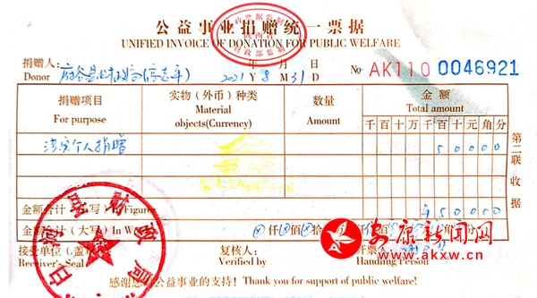 據(jù)悉,這筆特殊捐款來自2020年時任陜西省府谷縣財(cái)政局副局長高志平。在當(dāng)年全省脫貧攻堅(jiān)交叉檢查時,白河縣脫貧攻堅(jiān)資金績效檢查組被抽調(diào)檢查府谷縣,在近一個月的時間里,高志平與檢查組成員們同吃同住、相互配合,高質(zhì)量完成了檢查任務(wù),也結(jié)下了深厚的兄弟情義。在得知白河縣受到暴雨天氣影響,多地發(fā)生災(zāi)情時,他心急如焚,一直用微信與白河縣的同志們交流了解情況。當(dāng)?shù)弥敬伟缀邮転?zāi)嚴(yán)重時,他第一時間表示要求捐款,委托白河的同志幫忙通過微信轉(zhuǎn)賬進(jìn)行捐款,知道捐贈成功后,高志平心里的一塊大石頭終于落地,他高興地說:“只是做了自己力所能及、量力而行的事,希望更多的人都能獻(xiàn)出一點(diǎn)愛,幫助災(zāi)民渡過災(zāi)情。”