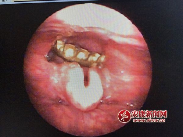 當(dāng)日上午8點(diǎn),一名男子來(lái)到縣醫(yī)院耳鼻喉科,不停地指著自己的喉嚨,異常困難地對(duì)醫(yī)務(wù)人員說(shuō):“醫(yī)生,我感覺(jué)喉嚨腫地好厲害,憋氣難受!”醫(yī)務(wù)人員經(jīng)喉鏡下檢查發(fā)現(xiàn)一個(gè)金屬的啤酒瓶蓋竟牢牢卡在該男子的氣管入口處,伴隨著男子地吞咽動(dòng)作,啤酒瓶蓋有往下繼續(xù)滑動(dòng)的趨勢(shì),情況危急,石泉縣醫(yī)院耳鼻喉科聯(lián)合胃鏡室在經(jīng)過(guò)了10余分鐘后把啤酒蓋從男子口中順利取出。異物清除后男子馬上感覺(jué)咽部不適的癥狀消失了。Zrw安康新聞網(wǎng)