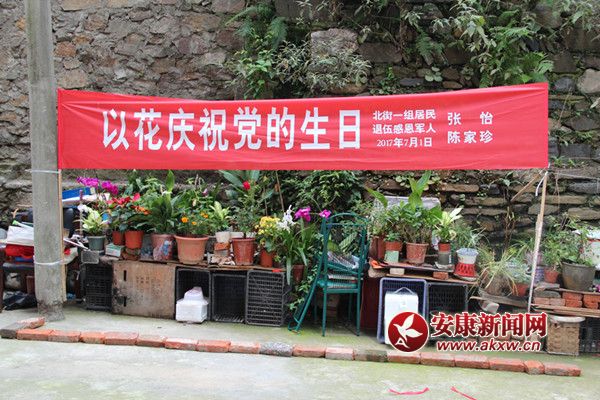 安康新聞網(wǎng)訊(趙杰 陳媛 劉禮偉)驕陽似火的七月,石泉縣城處處涌動(dòng)著熱浪,而在濱江大道通往明清古街的小南門巷口,一排人為擺放的綠植鮮花卻給盛夏帶來了一絲清涼和別樣風(fēng)景,一掛醒目的條幅——“以花慶祝黨的生日”更是引得來往過路的人紛紛側(cè)目停留。