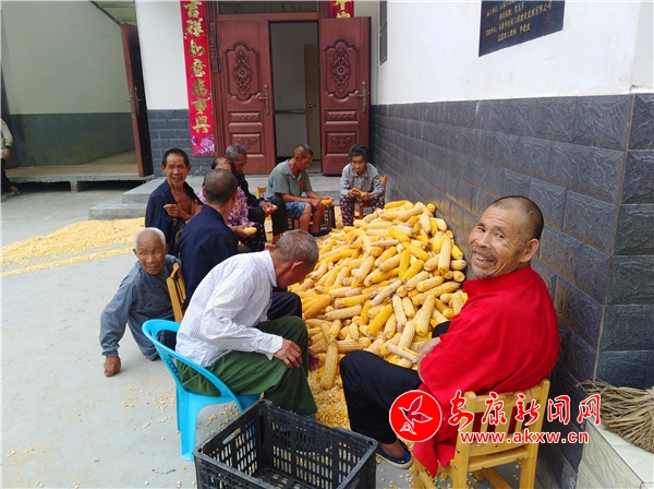 一大早,敬老院的費(fèi)院長(zhǎng)就安排院內(nèi)2位職工到玉米地組織工人采收玉米。為了安全起見(jiàn),院內(nèi)有勞動(dòng)能力的老人沒(méi)有安排外出采收,而是負(fù)責(zé)在敬老院內(nèi)組織人員剝玉米、晾曬。工人吆喝著騾子隊(duì)拖著一筐筐玉米回到敬老院,李建國(guó)等幾個(gè)有勞動(dòng)能力的五保老人就過(guò)來(lái)搭手,將一筐筐玉米攤放在院場(chǎng)內(nèi)晾曬。工作人員和其他的五保老人一起,紛紛參與到剝玉米的行列,院場(chǎng)中堆滿了金燦燦的玉米,老人們個(gè)個(gè)拿著玉米棒子正在脫粒。今年的玉米大豐收,個(gè)個(gè)玉米棒子顆粒飽滿,顏色金黃誘人。大家忙活著,露出豐收的喜悅。v5G安康新聞網(wǎng)