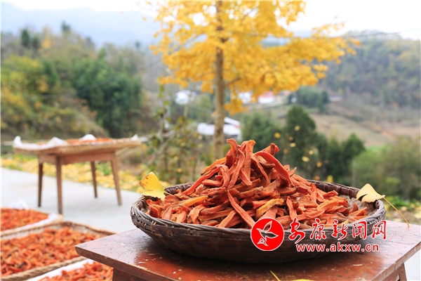 安康新聞網(wǎng)訊(通訊員 熊秘 李思純)11月11日,立冬已過(guò),石泉縣城關(guān)鎮(zhèn)紙坊村還是一片斑斕的秋景。家住半山腰的產(chǎn)業(yè)能人王銑斌今年在村里牽頭成立了生態(tài)農(nóng)業(yè)合作社,6月掛牌后,購(gòu)置了烘干設(shè)備,收了一夏黃花菜。10月初,地里的紅薯開(kāi)始開(kāi)挖,王銑斌以1元1斤的價(jià)格收購(gòu)全村的紅薯,利用烘干設(shè)備加工紅薯干。至11月初,王銑斌的合作社收購(gòu)貧困戶紅薯3000余斤,已通過(guò)線上線下銷售成品紅薯干400余斤。yKN安康新聞網(wǎng)